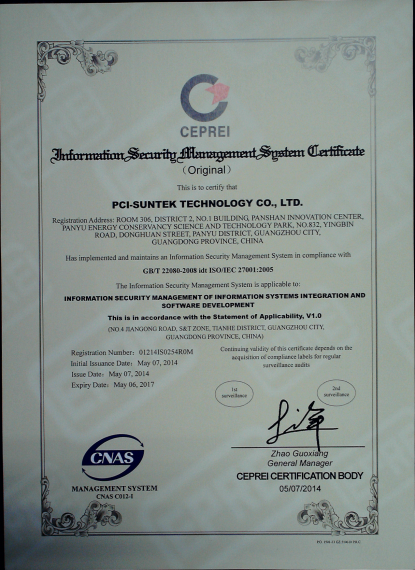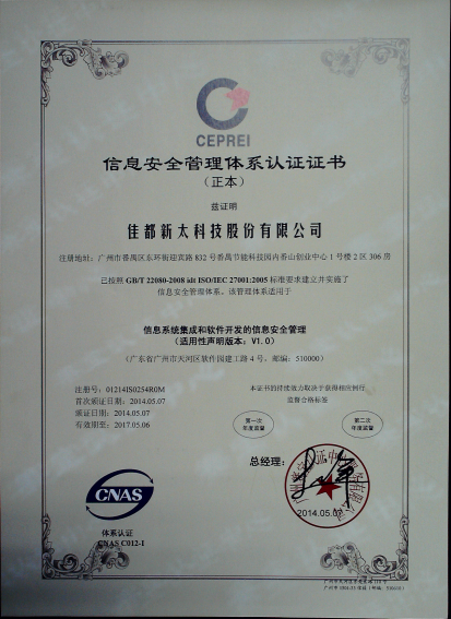 2014年3~4月,jiuyou.com科技顺利通过了国际标准及权威的ISO27001信息安全认证体系和ISO20000信息技术服务管理体系,取得了广州赛宝认证中心颁发的ISO/IEC 27001:2005信息安全管理体系认证证书和ISO/IEC 20000-1:2011信息技术服务管理体系认证证书。